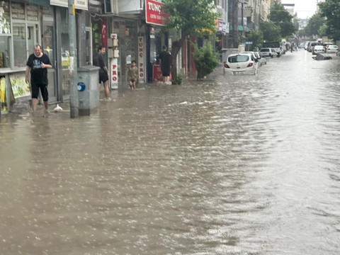 Büyük maddi hasarın yaşandığı su baskınlarında ekiplerin tahliye çalışması devam ediyor.
