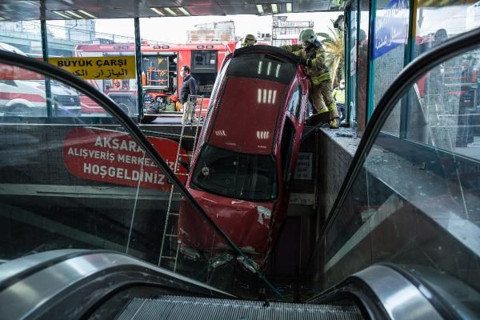 Akıl almaz kaza! İstanbul'da yeraltı çarşısına otomobil düştü