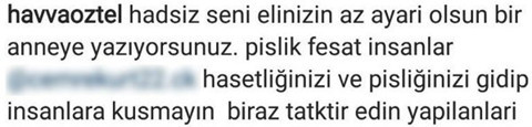 Kendisine atılan bu DM mesajı görünce çok sinirlenen ve kayıtsız kalamayan Havva Öztel, "Ooo senin de gözün mü kaldı?" cevabını verdi.