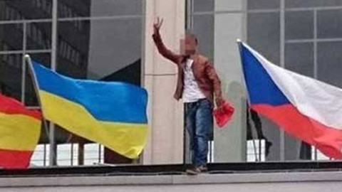 Bir vatandaş tarafından çekilen videoda, bayrağı kaldıran kişi ile