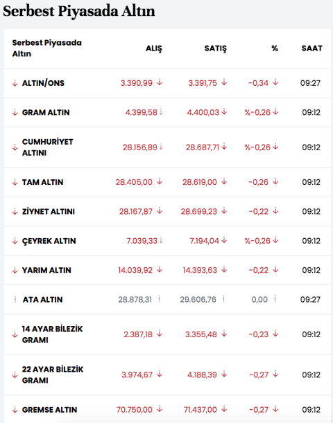 Saat 09.30 itibariyle gram altın 4.400 TL'den işlem görüyor.