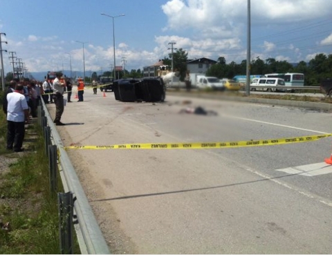 Galerinin tamamı için tıklayınızKaza, saat 11.30 sıralarında D-100 Karayolu Yenitaşköprü mevkiinde meydana geldi. İstanbul yönüne giden Cem Göloğlu yönetimindeki 81 AN 886 plakalı otomobil, sürücüsünün direksiyon kontrolünü yitirmesi sonucu bariyerlere çarparak karşı şeride geçti.