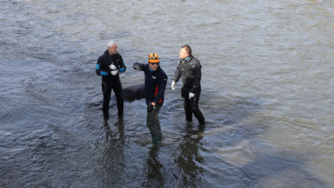 Erkek cesedi ırmaktan itfaiye ekiplerince çıkarıldı.