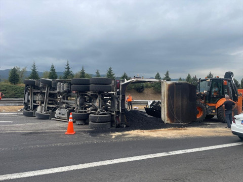Anadolu Otoyolu'nun Bolu Dağı kesiminde kamyon devrildi! İstanbul yönü ulaşıma kapandı