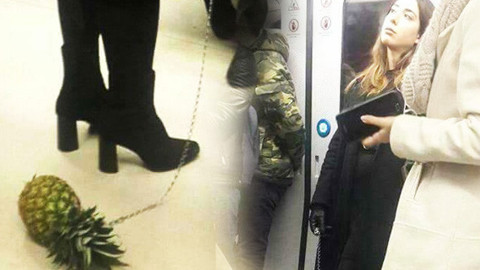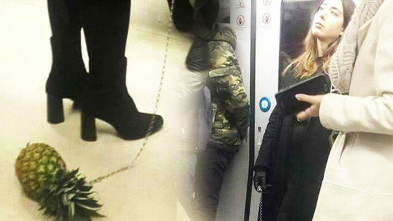 Ananasa tasma takıp gezdiren kadın sosyal medyanın gündeminde. Ankara metrosunda ananası gezdirirken görüntülenen Elif Usta isimli genç kadın görenleri hayrete düşürdü. Daha sonra instagram hesabından açıklama yaptı. Sosyal medyanın gündemine Ankara metrosunda zincire bağladığı ananası dolaştıran bir kadın oturmuştu. Bu görüntüye neden olan sebep ise sonradan ortaya çıktı. Ankara metrosunda çekilen iki fotoğraf karesi sosyal medyanın gündemine oturdu. Fotoğraflarda, ananası zincirle bağlayıp evcil hayvan gibi "dolaştıran" bir kadın yer alıyor. Twitter ve Ekşi Sözlük'ün gündemine oturan fotoğraf için onlarca yorum yapıldı, yurttaşlar durumun ne olduğunu anlamaya çalıştı. İşin gerçeği ise sonradan ortaya çıktı. Elif Usta isimli yurttaş, Instagram'daki hesabından "performans sanatına giriş yapmak adına ananas gezdirdiğini" açıkladı. "Gerçekten çok ilginç tepkiler aldık. Ciddi kalmak en zoruydu. Farkında olmasalar da tüm yolculara katkılarından dolayı teşekkür ederiz" ifadelerini kullanan Elif Usta, "Bu işi çok özel kıldılar. İşin son hali için biraz daha vakit var. Bu arada ananasın sonu biraz kötü olacak gibi" dedi. Buna benzer bir olay daha önce Çin'de yaşanmıştı. Bir grup genç tasma bağladıkları lahanayı sokaklarda dolaştırmıştı. Bunu daha sonra bir sanat projesi olarak açıklamışlardı. Sosyal medyada olay yaratan Elif Usta'ya yorumlar gecikmedi. İşte o yorumlar;