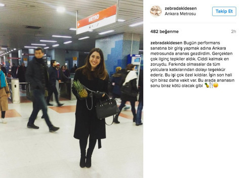 Galerinin tamamı için tıklayınızİşin gerçeği ise sonradan ortaya çıktı. Elif Usta isimli yurttaş, Instagram'daki hesabından "performans sanatına giriş yapmak adına ananas gezdirdiğini" açıkladı. "Gerçekten çok ilginç tepkiler aldık. Ciddi kalmak en zoruydu. Farkında olmasalar da tüm yolculara katkılarından dolayı teşekkür ederiz" ifadelerini kullanan Elif Usta, "Bu işi çok özel kıldılar. İşin son hali için biraz daha vakit var. Bu arada ananasın sonu biraz kötü olacak gibi" dedi.
