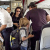 Genellikle özel jet kiralayarak seyahat eden Angelina Jolie ve Brad Pitt çifti bu kez şaşırttı. Altı çocukları ve yardımcılarıyla birlikte Los Angeles'dan Paris'e giden ünlü çift ekonomi sınıfı uçakta görüntülendi. Air France'ın kısa uçuşlarında sadece ekonomi sınıfı bulunduğundan dolayı bunu tercih etmek zorunda olan çift görenleri şaşırttı.