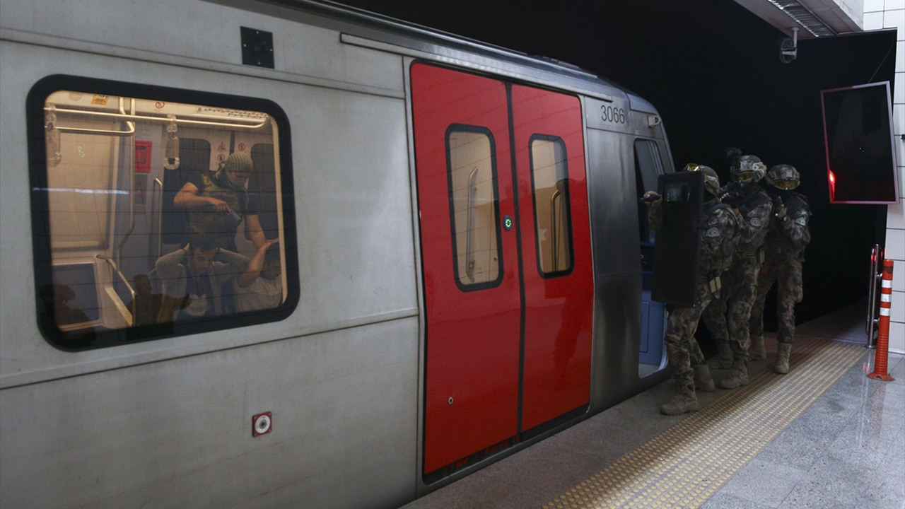 ANKARA Emniyet Müdürlüğü Özel Harekat Şube Müdürlüğü ekipleri, başkent metrosunda nefes kesen bir rehine kurtarma tatbikatı yaptı. Senaryoya göre, metroyu ele geçiren terörist kılığındaki meslektaşlarını saniyeler içerisinde etkisiz hale getiren özel harekatçılar, rehineleri burunları dahi kanamadan kurtarmayı başardı.