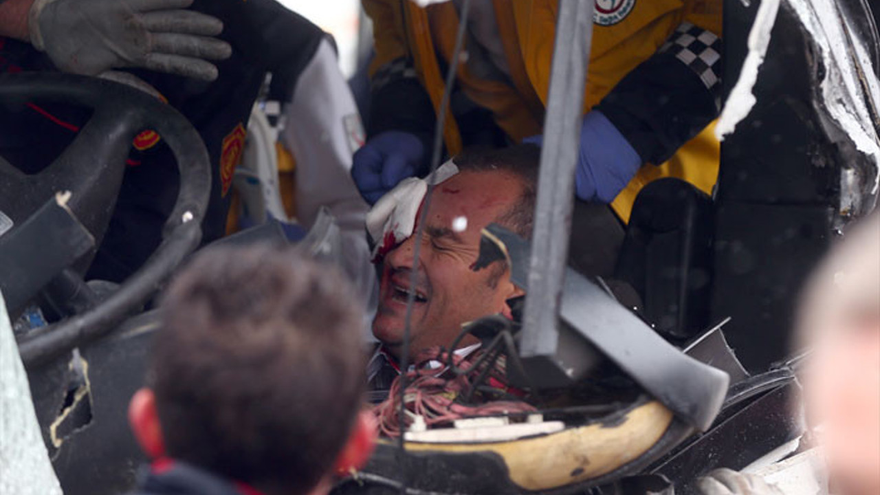 Ankara'da belediye otobüsü ile hafriyat kamyonunun kafa kafaya çarpışması sonucu 11 kişi yaralandı. Şoför mahallinde sıkışan otobüs ve kamyon şoförleri itfaiye ekiplerinin yaklaşık 2 saat süren çalışması sonucunda kurtarıldı Keçiören’de 06 DT 1129 hafriyat kamyonu ile 06 BS 9562 belediye otobüsü, Bağlum Gülen Caddesi üzerinde kafa kafaya çarpıştı. Kazada otobüste bulunan 9 yolcu hafif şekilde yaralandı. Kaza sonrası olay yerine polis, itfaiye ve sağlık ekipleri sevk edildi. Hafif yaralı 9 yolcu ambulanslarla çeşitli hastanelere götürülürken, şoför mahallinde sıkışan otobüs ve kamyon şoförleri itfaiye ekiplerinin yaklaşık 2 saat süren çalışması sonrasında yaralı olarak kurtarıldı. Yaralı sürücüler de ambulanslarla hastanelere kaldırıldı.