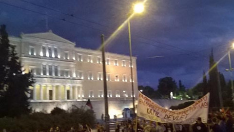 saldırıları protesto için Atina halkını Meclis binasının önündeki