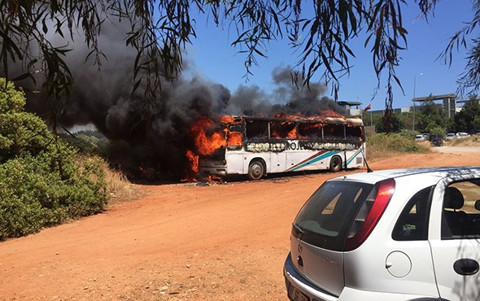 Antalya Konyaaltı'nda tur otobüsü alev alev yandı!