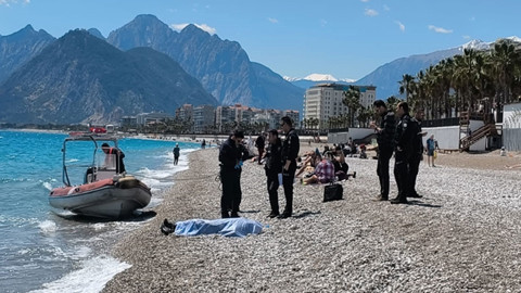 Konyaaltı Sahili'nde denize giren bir kişinin suda hareketsiz