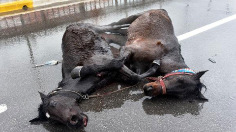 Antalya'da sahipsiz iki ata kamyonet çarptı. Çeşitli yerlerinden yaralanan, bir süre sonra yol kenarına alınan iki at, tedavi edilmek üzere hayvan ambulansıyla barınağa götürüldü. Kaza öğle saatlerinde Muratpaşa ilçesi Gazi Bulvarı üzerinde meydana geldi. Sahipsiz gezen 1'i dişi iki ata, araç trafiğinin yoğun olduğu Gazi Bulvarı üzerinde ters şeritten ilerlediği sırada, iddiaya göre önce bir kamyonet, ardından Tır çarptı. Kazada atlardan erkek olan hafif yaralanırken, diğeri çeşitli yerlerinden darbe aldı. Kaza nedeniyle tek şeridi kapan yolda uzun araç kuyrukları oluşurken, vatandaşlar durumu polis ve Antalya Büyükşehir Belediyesi'ne bildirdi. Kısa sürede belirtilen adrese gelen polis çevre güvenliği alırken, yerde uzun süre yatan atlar vatandaşların yardımıyla ayağa kaldırılıp yolun kenarına getirildi. Yaralı atlar daha sonra hayvan ambulansıyla hayvan barınağına götürüldü. Olayı görenlerden Sefa Aktun, "Yolda yaralı atları görünce hemen durdum. Çeşitli kurumları arayıp yardım istedim. İnşallah bir şey olmaz" dedi.