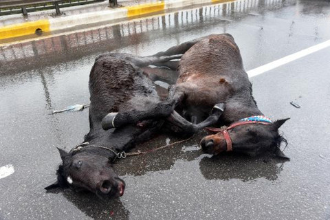 Antalya'da kaza yapan atların yürek burkan hali!