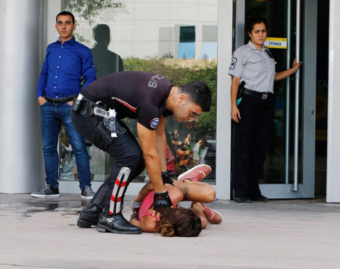 Galerinin tamamı için tıklayınızPersonele küfredip, saldıran Dilara Ö., kendisini sakinleştirmek isteyen polislere de küfretmişti. Yarım saat süren çabalara rağmen bir türlü sakinleşmeyen Dilara Ö., ekipler tarafından polis merkezine götürülmüştü.