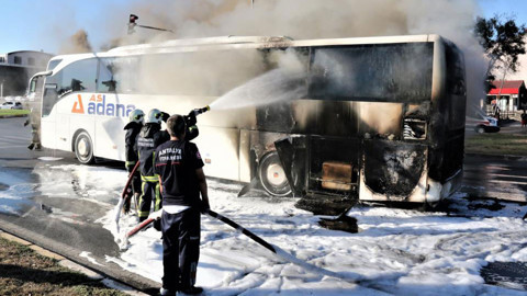Olay, Kepez ilçesi Antalya Bulvarı Otogar Kavşağı üzerinde meydana geldi. Edinilen bilgiye göre; Hakan T. yönetiminde bulunan 01 AHR 480 plakalı otobüs akşam saat 21.00’da Antalya-Adana seferinin yolcularını almak üzere sanayiden otogara doğru yola çıktı.Otobüs otogar kavşağına geldiği sırada motor kısmından dumanların çıktığını gören sürücüler şoförü uyardı. Durum 112 Acil Çağrı Merkezi'ne bildirildi. İhbarın ardından olay yerine çok sayıda polis ve itfaiye ekipleri sevk edildi.Çok sayıda ekip müdahale ettiOtobüs çıkan dumanların ardından bir anda alevlere teslim oldu. Alev alev yanan otobüse ekipler kısa surede müdahale etti. Şoför ve muavinler ise olaydan yara almadan kurtuldu.Çok sayıda itfaiye ekibinin müdahale ettiği yangın köpüklü su kullanılarak kısa surede söndürüldü. Yangında otobüsün motor kısmı ve yarısı yanarak kullanılamaz hale geldi.Çok sayıda itfaiye ekibinin müdahale ettiği yangın köpüklü su kullanılarak kısa surede söndürüldü. Yangında otobüsün motor kısmı ve yarısı yanarak kullanılamaz hale geldi.
