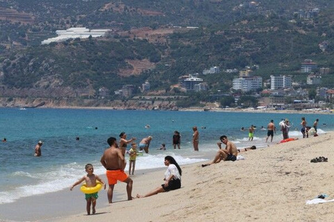 Antalya'da sıcak havayı gören plajlara akın etti! Turistler denizin keyfini çıkardı