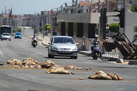 Antalya'da TIR'dan caddeye kurban atıkları döküldü