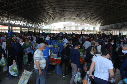 Pazara alışveriş için gelen Ramazan Arslan, “Ramazan geliyor ve aynı zamanda 4 gün sokağa çıkma kısıtlaması var. Bizde herkes gibi ev ihtiyaçlarını karşılamaya geldik. Pazar çok kalabalık. Yoğunluk değil bu, mahşer günü gibi. İnsanlar sırt sırta, iç içe, yapış yapış geziyor. Görevli ne yapsın? Vatandaş ne yapsın?” ifadelerini kullandı.