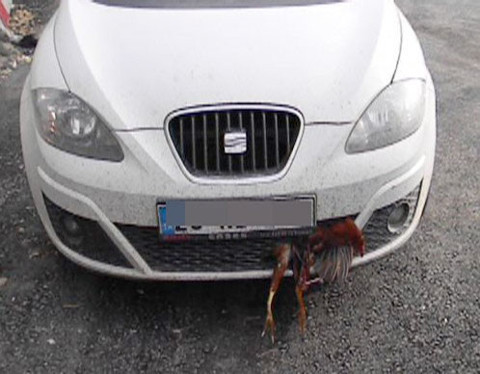 Erzurum’un Narman ilçesinde bir aracın tamponuna sıkışan horoz, 30 kilometrelik yolculuğun ardından vatandaşlar tarafından fark edilerek sıkıştığı yerden kurtarıldı.