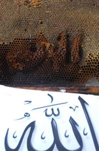 Denizli'de petek üzerindeki Allah yazısı görenleri şaşırtıyor Denizli'de demir çelik işi yapan işadamı Aslan Konyalıoğlu, bir süre önce organik tarımla da uğraşmaya başladı. Honaz Dağı'nda arı kovanları bulunan ve hayatının büyük bölümünü burada geçiren 72 yaşındaki Aslan Konyalıoğlu, geçen hafta kovanları incelerken gördüğü manzara karşısında büyük şaşkınlık yaşadı. Kendi arazisinde 15 arı kovanı olduğunu belirten Konyalıoğlu, geçen hafta petekleri incelerken üzerinde 'Allah' yazısı bulunan peteği görünce hem şaşırdığını hem de şükrettiğini ifade etti. Peteği işyerine götürerek merdivenlere asan altına da Arapça yazılı 'Allah' yazısını yapıştırıp benzerliğini ortaya koyan Aslan Konyalıoğlu, işyerine gelen herkesin bunu görmesi için de görülebilecek bir yerde tutuyor.