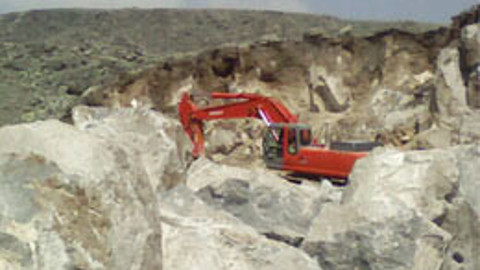 Ocağın üst zemininde iş makinesiyle çalışan kepçe operatörü Emin