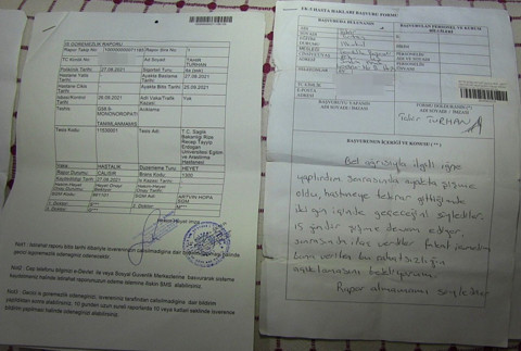 Galerinin tamamı için tıklayınızTuran "Ağrılarım bir türlü dinmeyince bu defa Rize Devlet Hastanesine gittim. Yapılan tahlil sonrası 'Kalçanıza enfeksiyonlu iğne yapılmış ve bu sebeple ayağınızda ağrılar bir süre daha devam edecek' denildi" dedi.