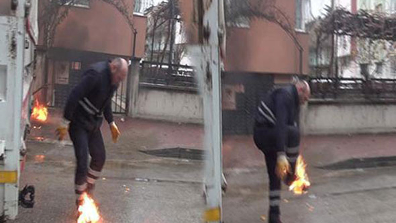 ESKİŞEHİR'de belediye işçileri, sokakta kazılan yeri kapatıp üzerine asfaltlama çalışması yaptıkları sırada yerdeki zift alev aldı. Söndürme çalışmasına katılan işçilerden birinin ayakkabısı tutuştu. Ayakkabısını çıkaran işçi giysilerinin tutuşmasını önlerken ayakkabısını da kaldırım kenarındaki biriken suda söndürdü. Olayda işçi yara almadan kurtulurken park halindeki otomobilde hafif hasar oluştu. Olay, Kurtuluş Mahallesi Kurtuluş Cami Sokak'ta meydana geldi. Eskişehir Büyükşehir Belediyesi Su ve Kanalizasyon İdaresi Genel Müdürlüğü'nde (ESKİ) çalışan işçiler kazı yapılan bir yerin üzerini kapattı. İşçiler toprakla kapattıkları yerin üzerine sıcak asfalt döktü. Asfalt dökümü sırasında yerdeki zift alev aldı. Park halindeki bir otomobilin yanında meydana gelen yangına bir belediye işçisi kamyonet kasasındaki kumları kürekle atarak söndürmeye çalıştı. Bu sırada otomobilin sahibi gelerek aracını ileriye götürdü. Kumla yangını söndürmeye çalışan işçi kamyonetten indiği sırada ayakkabısının biri alev aldı. Ayakkabısını çıkaran işçi giysilerinin tutuşmasını önlerken ayakkabısını da kaldırım kenarındaki biriken suda söndürdü. Olayda işçi yara almadan kurtulurken park halindeki otomobilde hafif hasar oluştu.