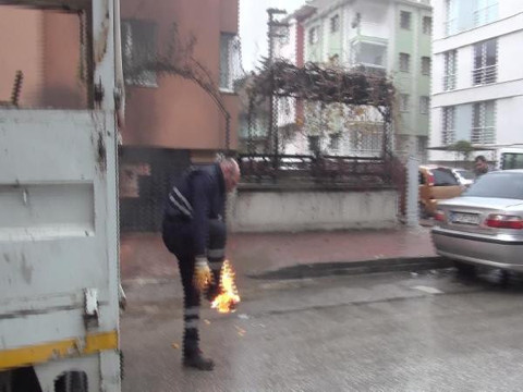 ESKİŞEHİR'de belediye işçileri, sokakta kazılan yeri kapatıp üzerine asfaltlama çalışması yaptıkları sırada yerdeki zift alev aldı. Söndürme çalışmasına katılan işçilerden birinin ayakkabısı tutuştu. Ayakkabısını çıkaran işçi giysilerinin tutuşmasını önlerken ayakkabısını da kaldırım kenarındaki biriken suda söndürdü. Olayda işçi yara almadan kurtulurken park halindeki otomobilde hafif hasar oluştu. Olay, Kurtuluş Mahallesi Kurtuluş Cami Sokak'ta meydana geldi. Eskişehir Büyükşehir Belediyesi Su ve Kanalizasyon İdaresi Genel Müdürlüğü'nde (ESKİ) çalışan işçiler kazı yapılan bir yerin üzerini kapattı. İşçiler toprakla kapattıkları yerin üzerine sıcak asfalt döktü. Asfalt dökümü sırasında yerdeki zift alev aldı. Park halindeki bir otomobilin yanında meydana gelen yangına bir belediye işçisi kamyonet kasasındaki kumları kürekle atarak söndürmeye çalıştı. Bu sırada otomobilin sahibi gelerek aracını ileriye götürdü. Kumla yangını söndürmeye çalışan işçi kamyonetten indiği sırada ayakkabısının biri alev aldı. Ayakkabısını çıkaran işçi giysilerinin tutuşmasını önlerken ayakkabısını da kaldırım kenarındaki biriken suda söndürdü. Olayda işçi yara almadan kurtulurken park halindeki otomobilde hafif hasar oluştu.