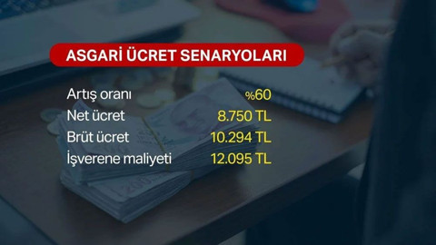 Üçüncü senaryo asgari ücretin yüzde 55'lik artış ile 8 bin 500 lira seviyesine ulaşması. Bu durumda brüt ücret 10 bin liraya, işverene maliyeti ise 11 bin 750 liraya yükseliyor.
