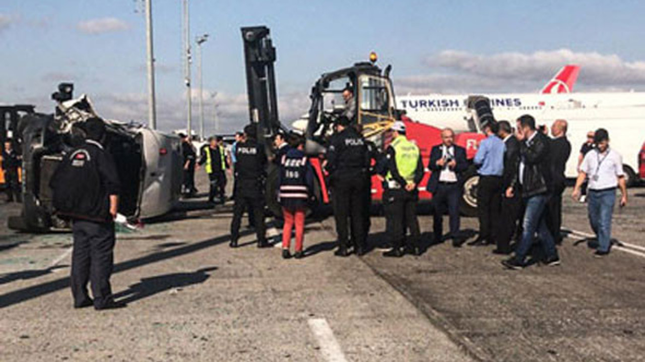 İSTANBUL Atatürk Havalimanı apronunda içinde sadece sürücüsü bulunan bir servis aracıyla temizlik firması çalışanlarını taşıyan servis minibüsü çarpıştı. Kazada yaralanan 9 kişi aprona giren ambulanslarca hastanelere kaldırıldı. Kaza hava trafiğini aksatmazken, aprondaki kaza yapan araçları kaldırma çalışmaları sürüyor... Atatürk Havalimanı apronunda iki servis aracının çarpışması sonucu 9 kişi yaralandı. Alınan bilgiye göre, içinde sadece sürücüsü bulunan bir servis aracıyla temizlik firması çalışanlarını taşıyan minibüs çarpıştı. Durumun bildirilmesi üzerine, olay yerine polis, itfaiye ve sağlık ekipleri sevk edildi. İlk müdahalesi olay yerinde yapılan yaralılar, ambulanslarla çevredeki hastanelere kaldırıldı. Kaza, hava trafiğinde herhangi bir aksamaya neden olmazken, kaza yapan araçları kaldırma çalışmaları sürüyor.