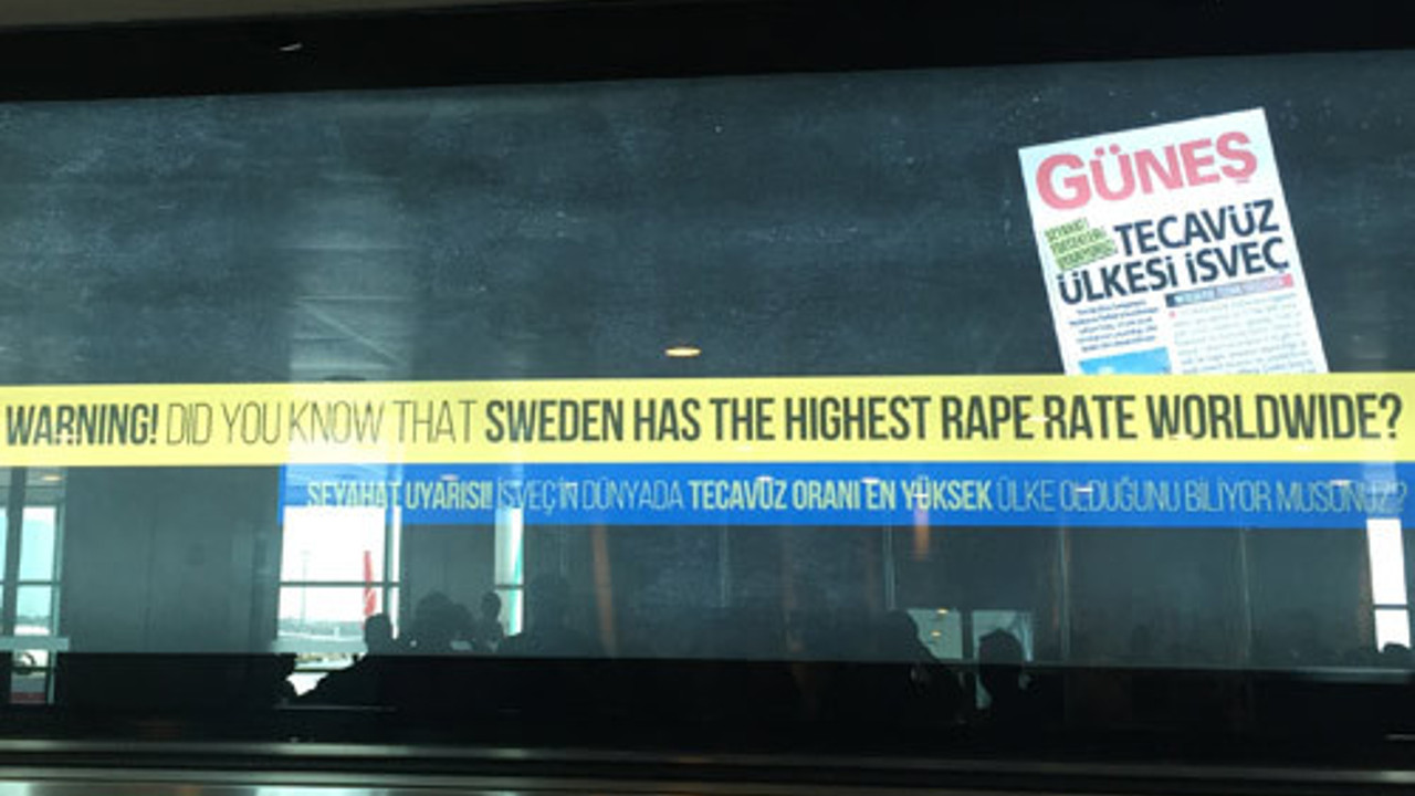 Son dönemde özellikle de darbe girişimi sonrası Batı dünyasında estirilen Türkiye aleyhtarı kampanyaların ardı arkası kesilmiyor. Son olarak İsveç Dışişleri Bakanı Margot Wallström'ün "Türkiye'nin 15 yaşın altındaki çocukların cinsel ilişkiye girmesine izin vermesine dair kararı iptal edilmeli. Çocukların şiddet ve cinsel istismara karşı daha az değil, daha fazla korunmaları lazım" şeklindeki tweeti ortalığı karıştırdı. Wallström'ün attığı tweet; Viyana Uluslararası Havalimanı'nın yolcu salonunda, Kronen Zeitung gazetesine ait elektronik panoda Türkiye'de 15 yaşın altındaki çocukların istismarına izin verildiğinin iddia edilmesi nedeniyle yaşanan bilgi kirliliğinin ardından gelmişti. Avusturya'nı başkenti Viyana'dan yayılan iftiraya benzer bir misilleme geldi. Türkiye tepkisini yalan ile değil gerçekler üzerinden verdi. Atatürk Havalimanı Dış Hatlar Gidiş Terminali'ndeki bir billboarda, Türkçe ve İngilizce "Seyahat uyarısı. İsveç'in dünyada tecavüz oranı en yüksek ülke olduğunu biliyor musunuz?" yazılı ilan verildi. Terminalde turistlerin yoğun olarak kullandığı alana konulan ilanda, Güneş gazetesinin "Tecavüz ülkesi İsveç" manşetli sayfası da bulunuyor. İlanın, uçaklarının bulunduğu körüğe giden yolcuların dikkatini çektiği görüldü. Havalimanında bulunan reklam panolarının özel bir şirket tarafından işletildiği öğrenildi. Yurt dışında yaşayan Şerif Doğan ise Türkiye'nin güzelliklerine dikkati çekerek, Türkiye üzerinde oyunlar oynandığını ifade etti. Doğan, bazı asılsız haberlerle Türkiye'nin karalanmaya çalışıldığını anlatarak, "Bu ülkeyi aynı Suriye gibi, Irak gibi, Afganistan gibi bölmeye çalışıyorlar. Bunlar yalan, oyuna gelmeyelim." dedi. Almanya'da yaşayan yolculardan Selahattin Ödük, havalimanında AA muhabirine yaptığı açıklamada, Avrupa'nın, Türkiye'nin turizmini etkilemek için bazı çalışmalar yürüttüğünü söyledi. Ödük, bu duruma karşı olduklarını ifade ederek, "Türkiye'yi karalamaya çalışıyorlar. Şu anda cennet gibi bir yerde yaşıyoruz." diye konuştu. Ödük, "Avrupa 'Türkiye'ye giderseniz bomba olayı var, şu var bu var, şu olay oluyor' diyerek, hep korkuyla turistik yerlerimizi boşaltmaya çalışıyor. Kıskandıklarından bunu yapıyorlar." değerlendirmesinde bulundu.