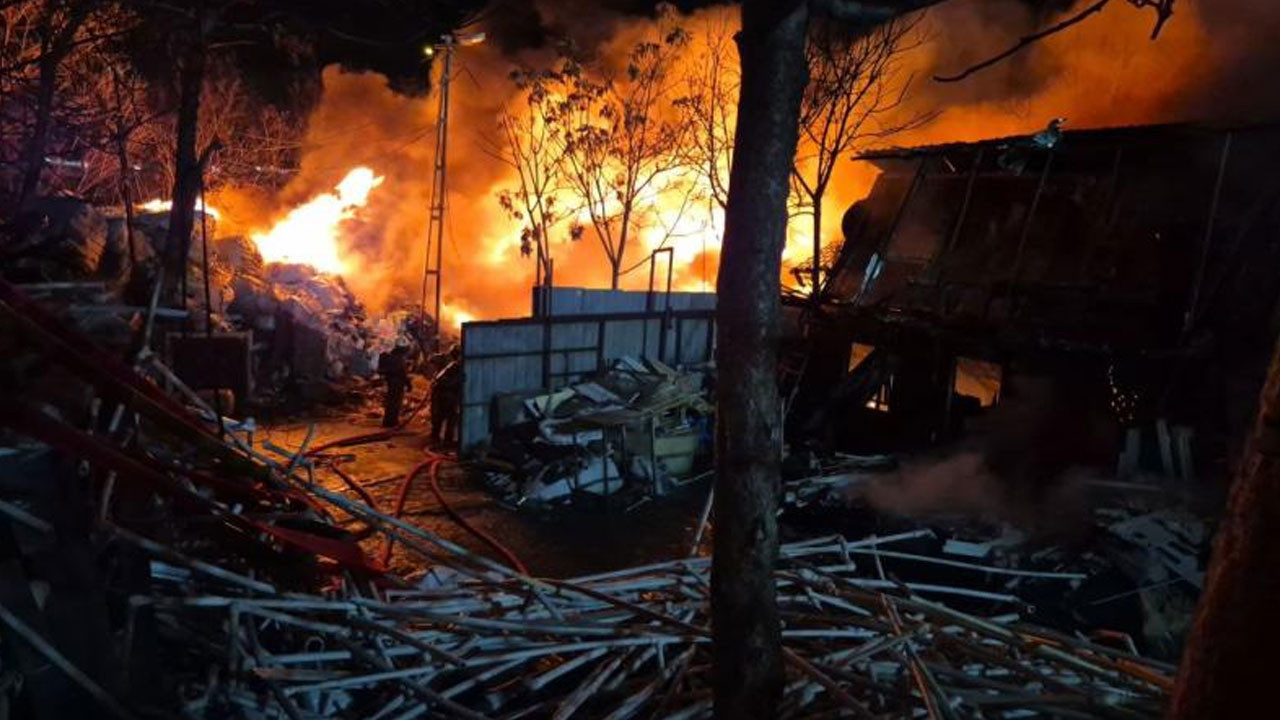 Avcılar'da geri dönüşüm tesisinde çıkan yangına itfaiye ekiplerince müdahale ediliyor.