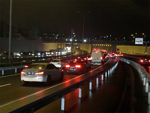 Açılışının ardından ilgi gören Avrasya Tüneli’nde akşam saatlerinden itibaren trafik yoğunluğu oluşmaya başlandı.