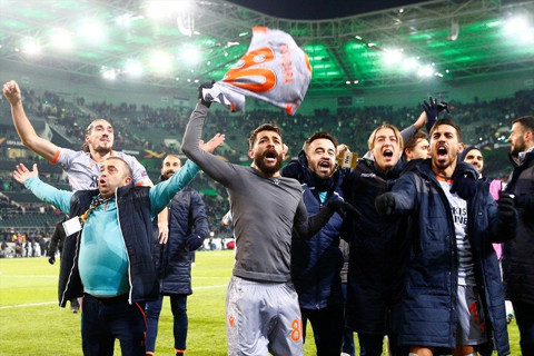 UEFA Avrupa Ligi J Grubu’nun son haftasında Medipol Başakşehir, Almanya deplasmanında Borussia Mönchengladbach ile karşılaştı. Mücadeleyi 2-1 kazanan Başakşehir grubu lider tamamlayarak tarihinde ilk kez üst tura yükseldi.Grubu lider tamamladı: Bu galibiyetle puanını 10'a yükselten Medipol Başakşehir grubunu lider tamamladı. Sekiz puanda kalan Borussia Mönchengladbach ise 3. sırada kalarak UEFA Avrupa Ligi'ne veda etti. Grupta, Medipol Başakşehir'in ardından 9 puanla grubu tamamlayan Roma da bir üst tura çıktı. Son dakika golü herkesi coşturdu: Medipol Başakşehir'in uzatma dakikalarında bulduğu gol büyük sevinç yaşattı. Tüm takım ve teknik ekip saha içinde birbirine sarılırken, tribünlerdeki Türk taraftarlar da coşkuyu doyasıya yaşadı. Turuncu-lacivertli takımın zaferi, maç sonunda da coşkuyla kutlandı. Soyunma odasında teknik ekip ve futbolcular uzun süre galibiyeti kutladı. Gol sevincini asker selamı vererek kutladı: Medipol Başakşehir orta sahasının önemli isimlerinden İrfan Can Kahveci, kariyerinde Avrupa kupalarındaki ikinci golünü Borussia Mönchengladbach'a attı. İrfan, deplasmanda oynanan maçın 44. dakikasında attığı golle takımının soyunma odasına 1-1'lik beraberlikle gitmesini sağladı. Milli futbolcu, gol sevincini asker selamı vererek kutladı. İrfan Can, Avrupa kupalarındaki ilk golünü ise Medipol Başakşehir'in sahasında Wolfsberger'i 1-0 yendiği maçta atmıştı.Türk taraftarlar çıldırdı: Almanya deplasmanında, karşılaşmanın başlamasının ardından Medipol Başakşehir tribünündeki Türk taraftarların sayısı da arttı. İlk düdük çaldığında yaklaşık 300 civarında taraftar tribünde yer alırken, ilerleyen dakikalarda bu sayı 500'ün üzerine çıktı. Alman taraftarların arasında da Türk taraftarların olması dikkati çekti. Tribünlerde Türk bayraklarının yanı sıra Bosna Hersek bayrakları da görüldü. İşte saha içinde yaşanan büyük sevinçten kareler...