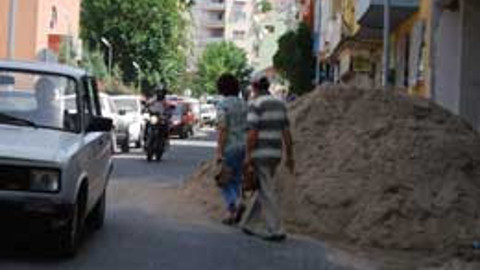 kamyonlarla dökülen kum yığınları hem trafiği hem de vatandaşları