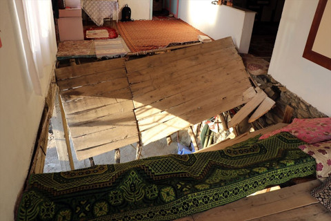 Çökme sonucu aralarında gelinin de bulunduğu 15 kişi birinci kattan düştü.