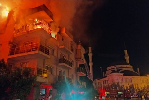 Galerinin tamamı için tıklayınızOlay gece yarısı Efeler İlçesi Mimar Sinan Mahallesi 2387 sokak üzerindeki bir binada meydana geldi. Edinilen bilgiye göre, gece yarısı bir olaya kızan 45 yaşındaki A.A. isimli şahıs, eşi ve çocukları ile birlikte 5 kişinin yaşadığı eve ateşe verdi.