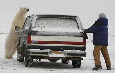 Kutup ayılarının fotoğraflarını çekmek isteyen muhabir bir anda kendini kovalamacanın içinde buldu!