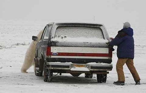Kutup ayılarının fotoğraflarını çekmek isteyen muhabir bir anda kendini kovalamacanın içinde buldu!