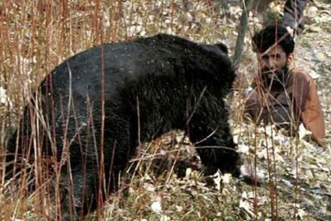 Ayı avına çıktı ve siyah bir ayıyla yüz yüze geldiğinde