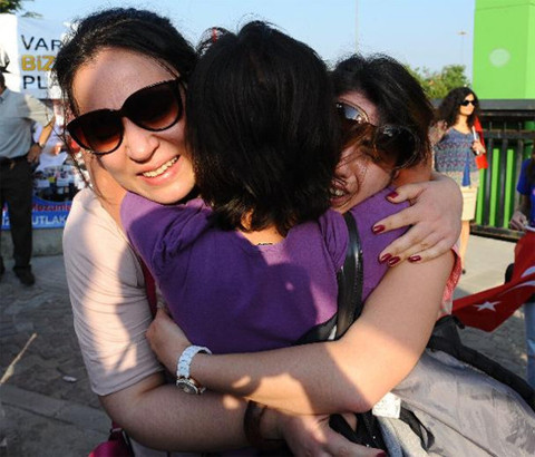 Galerinin tamamı için tıklayınızAnayasa Mahkemesi'nin kararı günlerdir mahkeme önünde adalet nöbeti tutan balyoz davası sanıklarının asker yakınlarını sevince boğdu.