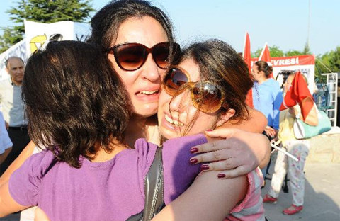 Anayasa Mahkemesi'nin kararı günlerdir mahkeme önünde adalet nöbeti tutan balyoz davası sanıklarının asker yakınlarını sevince boğdu. Birbirleriyle kucaklaşarak kararı kutlayan aileler büyük sevinç yaşadı. Kararın duyulmasından sonra eline Türk bayrağını alan vatandaşlar ise Anayasa Mahkemesi önüne koştu. İşte o sevinç anları...