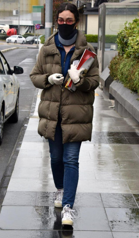 Galerinin tamamı için tıklayınız"Taktiği işe yaramadı": Birce Akalay, basın muhabirlerine karşı uyguladığı bu taktiğinin işe yaramadığını anlayınca, sevgilisini almak için diğer kapıya gitti. Bu esnada sevgilisinin market poşetleri ile Birce Akalay'ı beklediği görüldü. Akalay'ın poşetleri araca yerleştiren sevgilisine yardım etmemesi objektiflere takıldı.