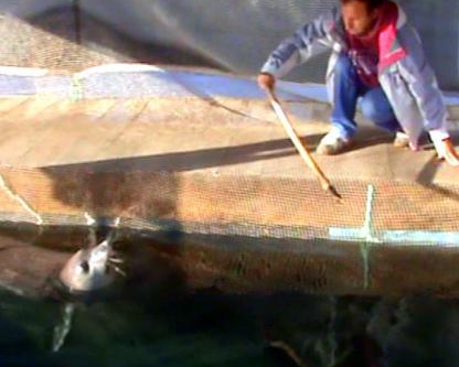 Muğla'nın Marmaris İlçesi'ne bağlı Karacasöğüt Köyü'ndeki bir koyda yaptırılan havuzda rehabilite edilmesi için üç yıl tutulan Akdeniz foku Badem'in sopayla dövülerek eğitilmeye çalışıldığı ortaya çıktı.
