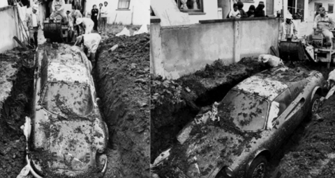 Galerinin tamamı için tıklayınızİki çocuk bahçeyi kazarken kazmayı sert bir cisme vurunca belki de hazine bulduklarını düşündüler. Hızla buldukları nesnenin etrafını kazmaya başladılar. Toprağın altından bir Ferrari çıktı! Bulduklarını anne ve babalarına gösterince onlar da şok oldu. Hemen polise haber verdiler. Olay yerine gelen yetkililer aracı topraktan çıkarmayı başardılar.