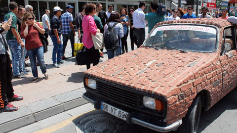 Galerinin tamamı için tıklayınızİki ay süren otomobil yapımında 2 kişi görev aldı. Tuğladol adını verdiği otomobili işi gereği reklam amaçlı tasarladıklarını belirten Türkoğlu, aracı 17 bin dolar fiyatla internette satışa çıkardı. 13 bin dolarlık bir teklifin geldiğini ancak satmadıklarını kaydeden Türkoğlu, 17 bin dolar getirene aracı satacağını söyledi.