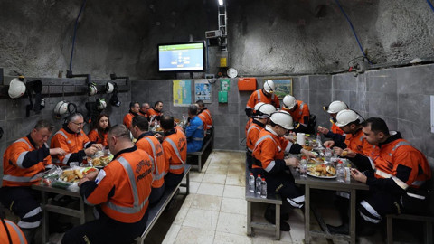 "İzmir Efemçukuru Madeni'nde, maden işçisi kardeşlerimizle bir araya gelerek sahur sofrasının bereketini, muhabbetini paylaştık. Emeğin, alın terinin ve dayanışmanın en güzel örneğini sergileyen madenci kardeşlerimize gönülden teşekkür ediyorum."