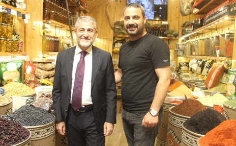 Galerinin tamamı için tıklayınızBir dizi temaslarda bulunmak üzere Gaziantep’e gelen Hazine ve Maliye Bakanı Nureddin Nebati kent merkezindeki tarihi çarşılar bölgesinde esnafı ziyaret etti. Esnaf ziyareti sırasında bir baharatçıya giren Bakan Nebati ile Gaziantep Büyükşehir Belediye Başkanı Fatma Şahin arasında yaşanan diyalog gülümsetti.