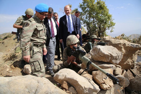 Burada 23. Jandarma Sınır Tümen Komutanı Tümgeneral Aydoğan Aydın'dan saldırı ile ilgili bilgi alan Soylu, mevzilerde nöbet tutan askerlerle görüştü.